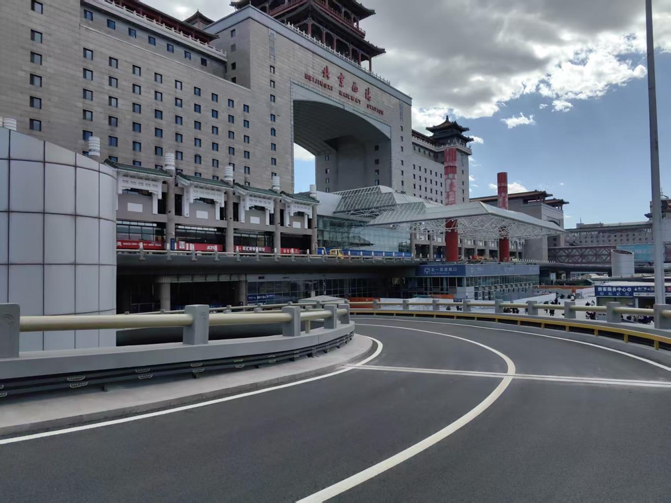 如今,修缮后的螺旋盘道桥面平整、护栏牢固、标识清晰,盘道双向车道保持不变。二层落客平台优化升级,拆除原有安检进站棚,由原先4车道拓宽为5车道,提升车辆通行效率,进一步缓解区域交通压力。