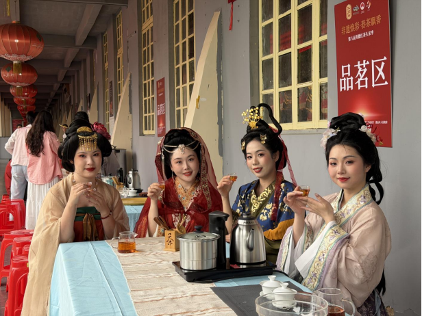 在这里,既可以看非遗传承人现场演绎英德红茶传统制作工艺,从萎凋、揉捻到发酵、烘焙,见证一片鲜叶蜕变为香茗的全过程;也可以尝一碗醇厚香浓的英德擂茶粥,感受“吃茶”文化的别样风味,这碗承载着地方记忆的美食,是英德人饮茶习俗的独特延伸;还可以亲手制作一枚合香珠,以茶香入珠,串成手串、挂饰,将春日茶香藏于指尖;更有专属泡茶区静候宾客,专业茶艺师现场冲泡头采新茶,金毫显露、茶汤红亮、香气高锐,轻啜一口,鲜醇回甘的滋味在口中绽放,沉浸式品味头采春茶的极致口感。