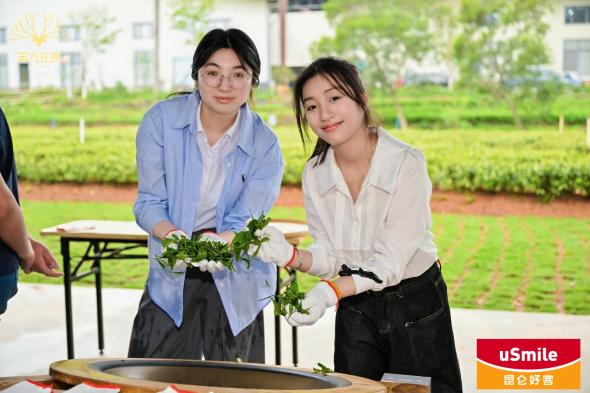 嘉宾们走进翠绿的茶园,亲手采摘春日里最鲜嫩的茶芽,享受采摘的喜悦之情。在制茶体验区,亲手体验英德红茶非遗制茶技艺,沉浸式感受传统制茶工艺的匠心与传承。
